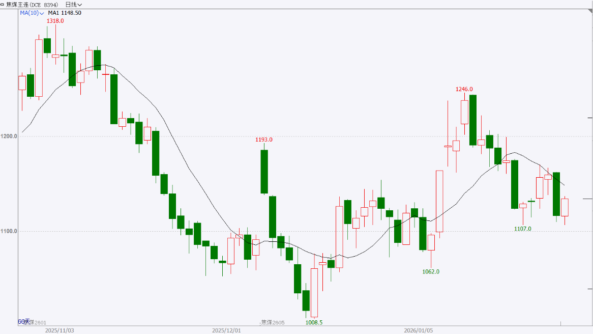 截至前一个交易日收盘,焦煤主力合约小幅反弹,止跌企稳。