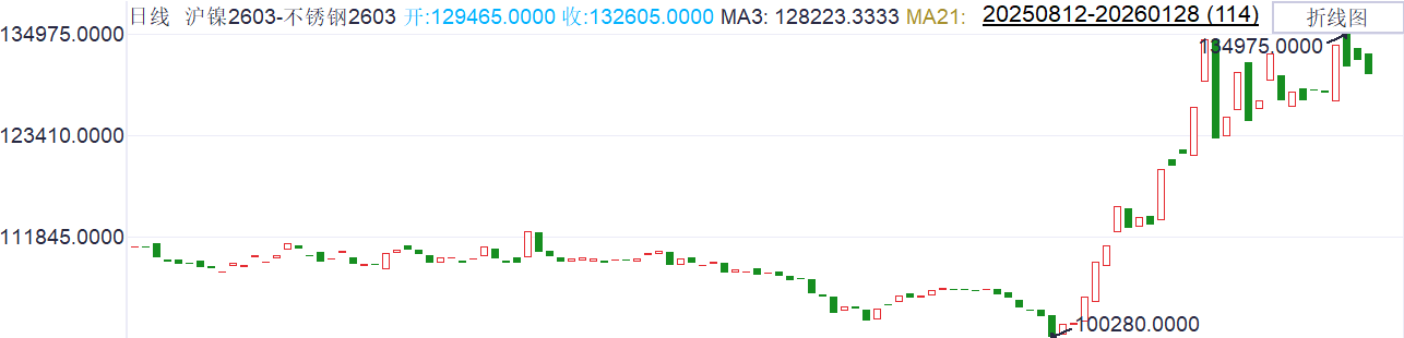 据同花顺消息,印尼下调2026年镍矿产量目标,下调幅度约为34%;两部门宣布逐步降低并取消电池产品出口增值税退税,预计抢出口局面或一定程度利好镍新能源需求。2026年印尼配额或为2.6亿吨,而需求量预估超过3.2亿吨。镍矿整体处于短缺的强预期之中。不锈钢方面,据我的钢铁网消息称,本周市场到货不多,周内在期货价格拉涨及备货预期存在支撑下,现货价格调涨,但下游备货情绪谨慎,多维持按需采买,整体资源消化速度较上周稍放缓。
