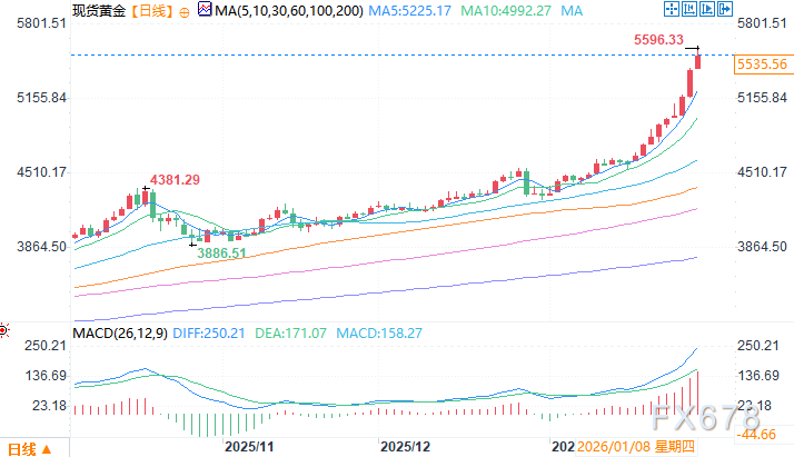 北京时间1月29日11:17 现货黄金 报 5534.56 美元/盎司