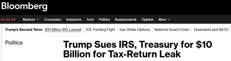 据悉,该诉讼已提交至佛罗里达州迈阿密联邦法院。特朗普方面称,相关税务信息未经授权披露,构成对特朗普个人隐私和合法权利的严重侵犯。 美国彭博社称,美国总统特朗普起诉美国财政部和国税局,称其在其第一任期内将他的纳税申报表未经授权泄露给媒体,要求至少100亿美元赔偿,此案可能导致美国纳税人最终承担巨额赔付责任。 该诉讼于周四(1月29日)在迈阿密联邦法院提起,原告包括特朗普本人、其子小唐纳德·特朗普和埃里克·特朗普,以及负责管理总统房地产资产的特朗普集团(Trump Organization)。特朗普长期以来一直批评国税局,指称其出于政治目的试图削弱、打压他。 特朗普的这起诉讼再次聚焦一场曾在2020年大选前数周成为舆论焦点的争端:当时《纽约时报》发布了一篇基于国税局泄露数据、披露特朗普税务记录的重磅报道。 前国税局承包商查尔斯·利特尔约翰(Charles Littlejohn)已认罪,承认窃取特朗普的税务数据并将其泄露给《纽约时报》。他还窃取了数千名其他美国富豪的纳税记录,包括肯·格里芬(Ken Griffin)、埃隆·马斯克(Elon Musk)和杰夫·贝索斯(Jeff Bezos),并将其泄露给ProPublica。 特朗普的律师亚历杭德罗·布里托(Alejandro Brito)在诉状中称,国税局和财政部“有责任妥善保管并保护原告的机密纳税申报表及相关税务信息,防止遭到未经授权的查阅和公开披露”。 布里托表示,“因此,被告有义务配备适当的技术措施、员工审查、安保以及监控系统,以防止利特尔约翰的违法行为。” 一位在任总统起诉其所领导的政府,使特朗普在这起案件中处于极为罕见的角色。 美国司法部中忠于政府的官员最终可能需要决定是否推动与原告和解,以及和解金额多少。 美国财政部未立即回应置评请求。《纽约时报》和ProPublica也未立即回应置评请求。这两家新闻机构并未被指控存在不当行为。 这份起诉书使特朗普本人或其庞大的房地产帝国在过去一年里提起的一系列诉讼进一步增加;这些诉讼将新闻机构和银行作为目标,其中包括摩根大通(JPMorgan Chase & Co.)——特朗普上周也对其提起诉讼。目前,这些案件合计索赔金额已超过500亿美元。 据《纽约时报》报道,国税局记录显示,特朗普在2020年败给拜登(Joe Biden)后,其在2016年和2017年分别仅缴纳了750美元的联邦所得税;而在此前15年中有10年未缴纳任何税款,原因是其巨额亏损抵消了全部利润。 《纽约时报》的报道称,特朗普的许多业务经营艰难,总统向这些公司投入的资金多于从中取走的资金;同时,他在白宫第一任期内还在海外赚取了数百万美元。对此,特朗普当时将相关报道斥为“完全是假新闻”。 该报道也引发了一场持续多年的风波:民主党议员试图推动将特朗普严密掌控的税务信息公开。 利特尔约翰在2024年1月被判处五年监禁;他承认自己进入国税局工作时就以获取特朗普税务数据为目标。其律师在量刑听证会上对法官表示,利特尔约翰的行为出于一种“深刻的道德信念”,认为美国公众有权获得这些信息。