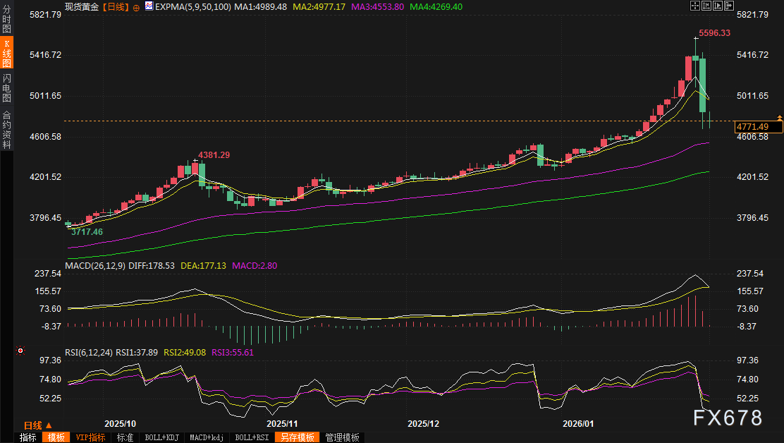 2026年1月注定将被载入贵金属交易史册。就在上周五(1月30日),现货黄金价格从上周四的纪录高点5596美元/盎司骤降9.5%,盘中最低触及4686.12美元/盎司,收于4883.62美元/盎司,而美国2月期金期货更是重挫11.4%,盘中最低触及4700美元/盎司,报4745.10美元/盎司。这不仅是1983年以来黄金的最大单日跌幅,整个月份的波动幅度也创下新高。