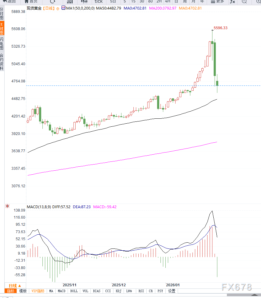 从关键价位观察,下方关注4600美元附近的技术支撑区域,该位置若有效守住,金价更可能以高位震荡的方式完成整理;上方则需重新站稳4900美元一线,才能重启趋势性上行。当前技术形态更倾向于“强势回调”而非趋势反转。