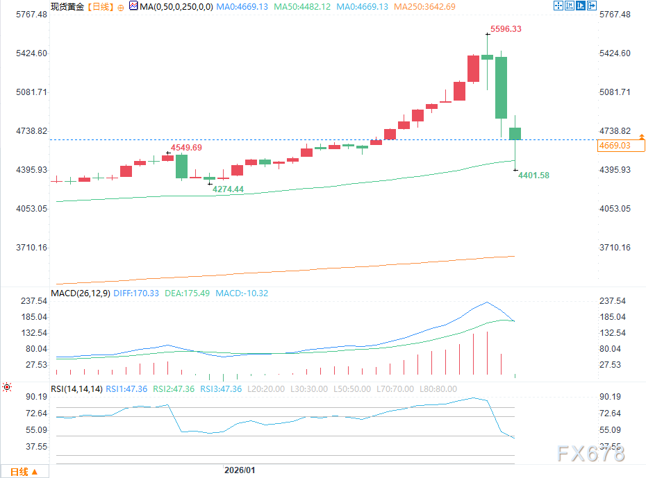 近期,黄金市场经历罕见且迅速的调整。自1月底创下历史高位(约5626.8美元/盎司)以来,价格短短数日内回落超过15-20%,截至2月2日徘徊于4600-4700美元区间,盘中最低触及4401.58美元,创下1983年以来最大单日跌幅。这一断崖式下跌不仅源于杠杆资金清算、获利了结与市场情绪恐慌的叠加,也对多头仓位信心造成重大冲击。高位追涨资金被套,主动多头大幅减仓,市场短期内信心难以恢复。