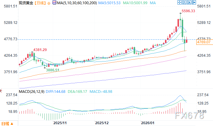 尽管金价未能维持在每盎司5000美元的初始支撑位,隔夜抛售压力将金价推低至每盎司4402美元,但金价已从低点大幅反弹。