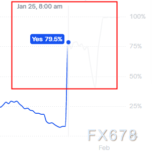 让我们回顾一下这两天发生了什么,其中一个关键事件是美国政府宣布可能又要关门,在1月25号的时候,政府关门的概率忽然上升至70%,这触发了避险的神经。
