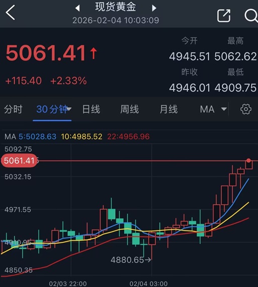 在这一背景下,金价自周一触及约4400美元低点以来,已累计反弹超过650美元,修复力度显著。