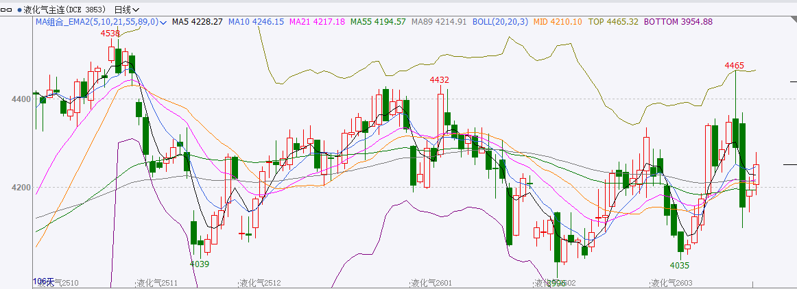 截至前一个交易日收盘,LPG震荡。收阳线。 走势分析:LPG短线反弹。原油反弹。冬季为民用气传统旺季,燃料需求增加,基本面有一定支撑,但仍然需要关注原油走势。