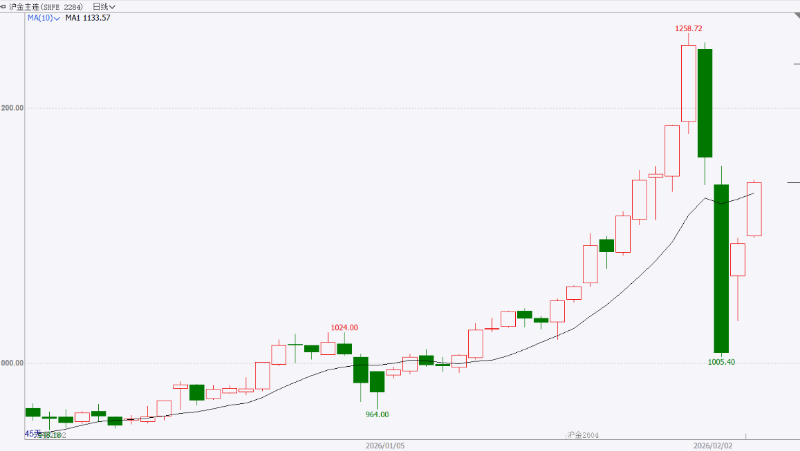 截至前一个交易日收盘,沪金主力合约大幅反弹,止跌企稳。 走势分析: 市场情绪从狂热转向谨慎。尽管地缘政治风险等长期支撑因素仍在,但短期内,市场需要时间消化极端超买的技术面,并重新评估美联储的货币政策路径。预计黄金短期内或转入震荡。