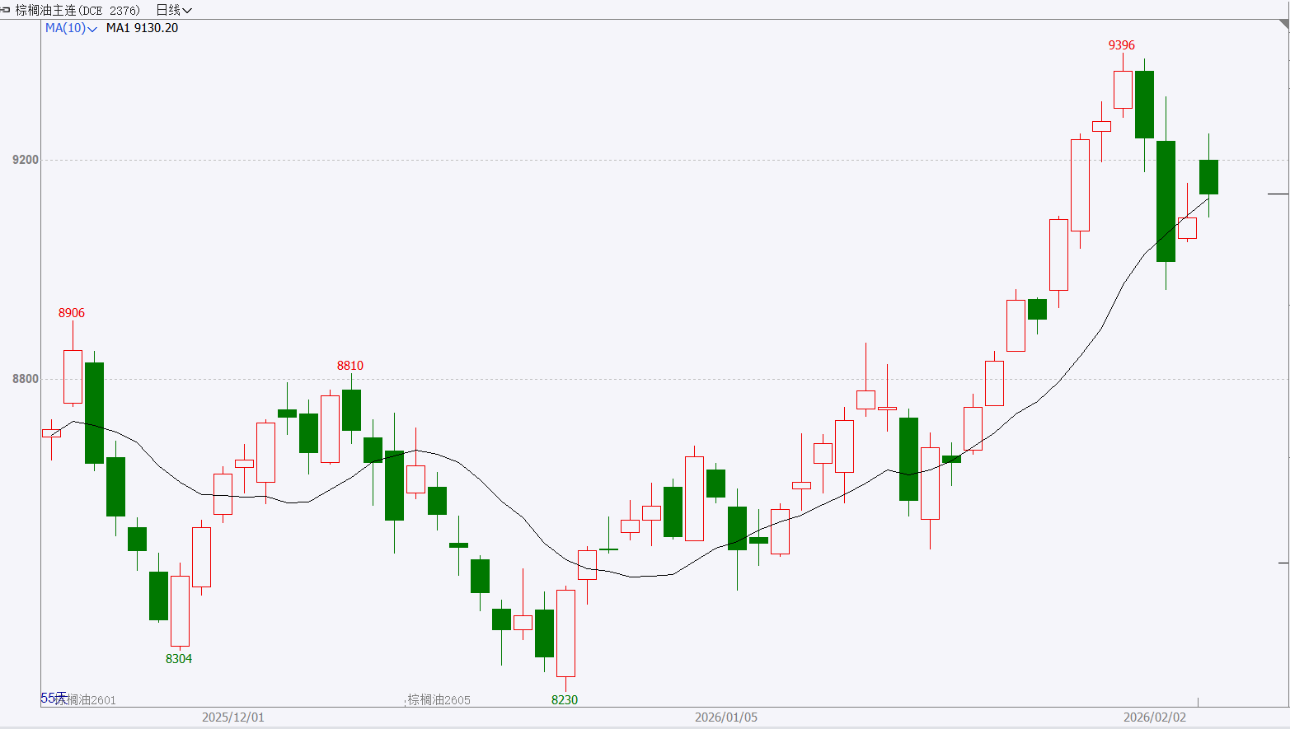 截至前一个交易日收盘,棕榈油主力合约高开低走,较前日小幅上涨。 走势分析:尽管存在季节性减产和斋月前的备货需求等短期支撑,但在产地高库存消化进程缓慢、关键需求政策不及预期以及外部竞争加剧的综合影响下,棕榈油缺乏持续强劲的上行动能,预计将呈现震荡偏弱的格局。
