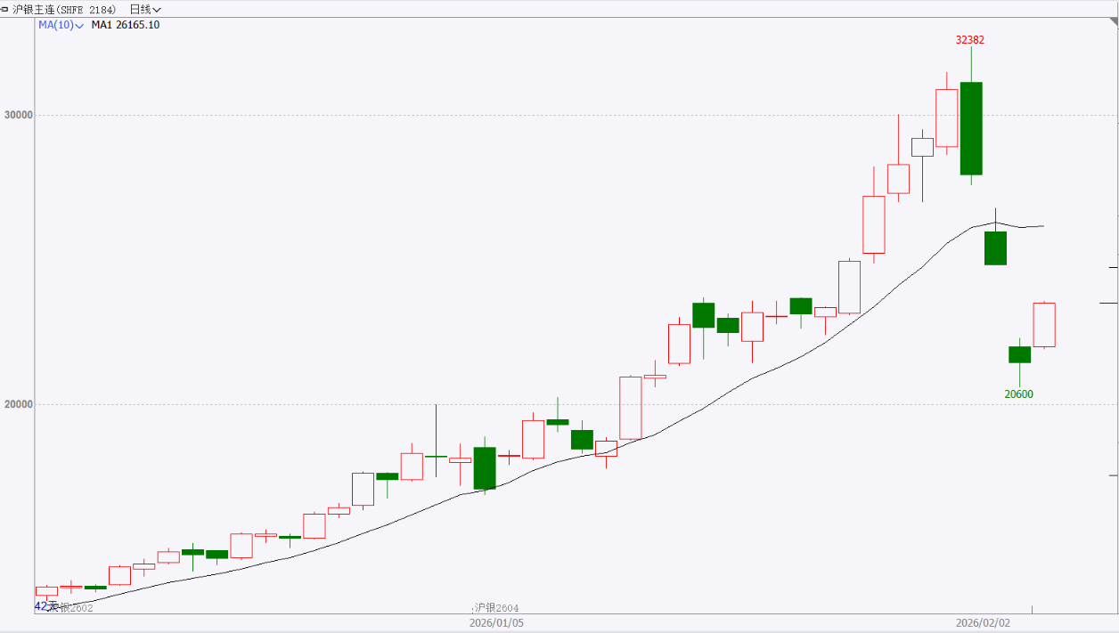 截至前一个交易日收盘,沪银主力合约高开高走,大幅反弹。 走势分析: 由技术性卖盘集中涌现、杠杆交易强制平仓所引发的集中获利了结,叠加美联储新任主席提名偏向鹰派的消息,打破了市场此前的宽松预期,以美元计价的白银带来了直接压力。但恐慌情绪释放之后,较强的基本面仍能为白银提供支撑,白银后市或转入震荡。
