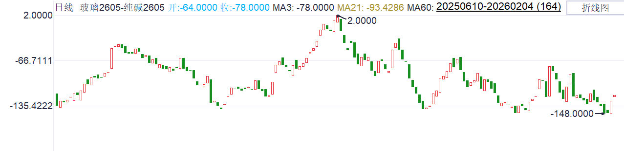 据同花顺消息,玻璃方面,浮法玻璃现货价格1106元/吨,地区价格多维持稳定,部分小幅上调10元/吨,下游适量备货。供应方面,国内玻璃产线在产213条,冷修停产83条,供应量或将延续下降趋势,年后冷修预期对期价形成一定支撑。纯碱库存增加且供应高位,上中游库存高企,限制了价格上涨空间。 操作策略:多玻璃空纯碱05,该策略为跨品种套利机会,可适当关注。