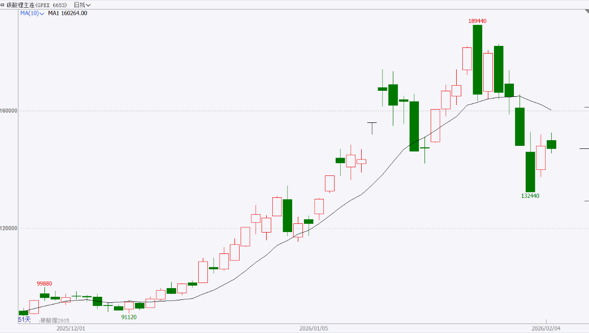 截至前一个交易日收盘,碳酸锂主力合约日内高开低走,小幅震荡。 走势分析:节前下游备货节奏的不确定性以及交易所为抑制过度投机而趋严的监管,碳酸锂遭遇高位技术性回调。预计短期内仍将挤出部分升水。