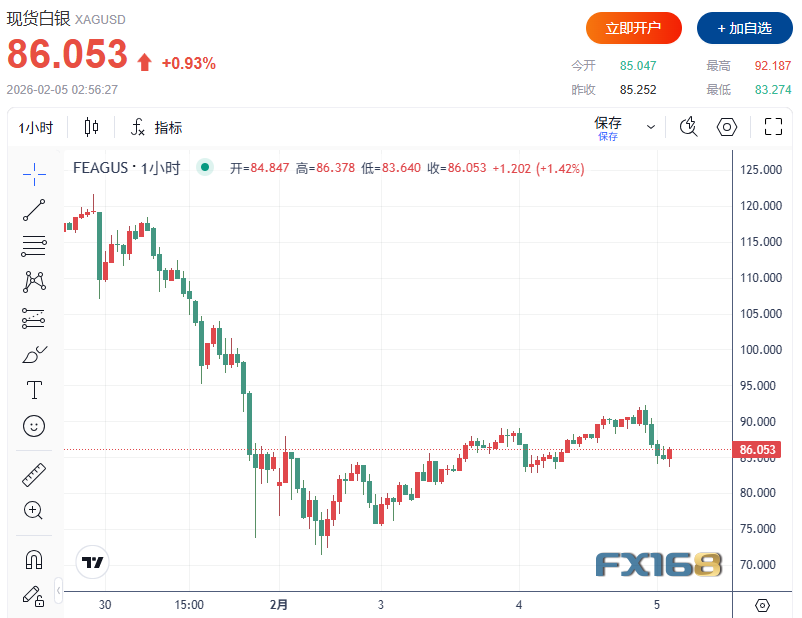 FX168财经报社(北美)讯 周三(2月4日),现货黄金在盘中稍早走强后回吐全部涨幅,转而下跌;白银则在上周“闪崩”后延续逢低买入行情,连续第二个交易日大幅反弹。尽管短线波动仍高,华尔街机构对贵金属中长期走势依旧偏多,高盛维持2026年底金价5400美元预测,摩根大通更看多至6300美元。