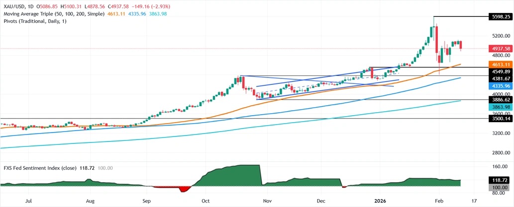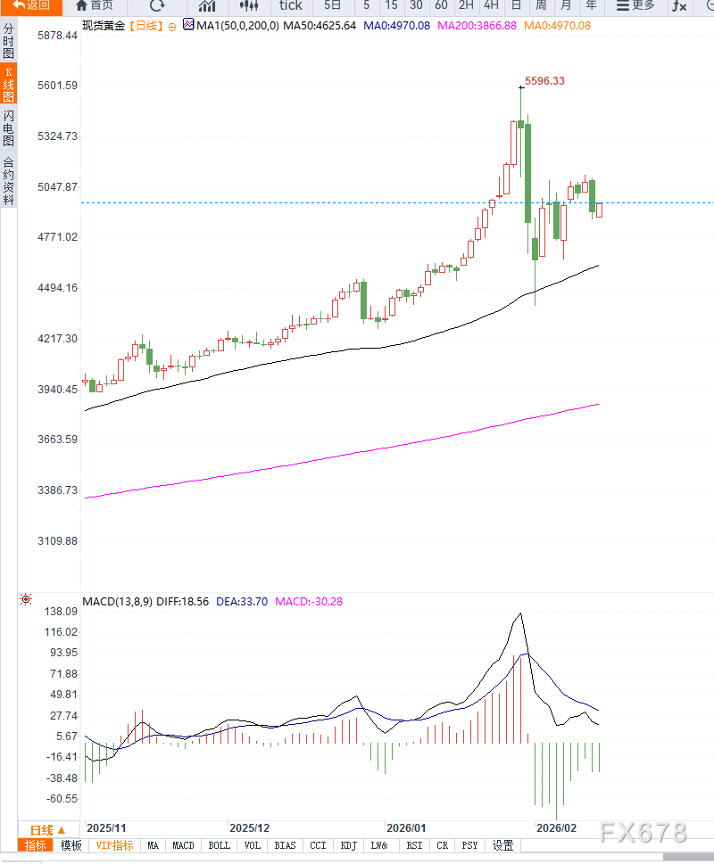 汇通财经APP讯——周五亚洲时段,现货黄金(XAU/USD)延续昨日回落,价格一度跌至4910美元附近,随后反弹。本轮下行并非孤立事件,而是在宏观数据强化利率高位预期与市场流动性收紧背景下形成的集中抛售。