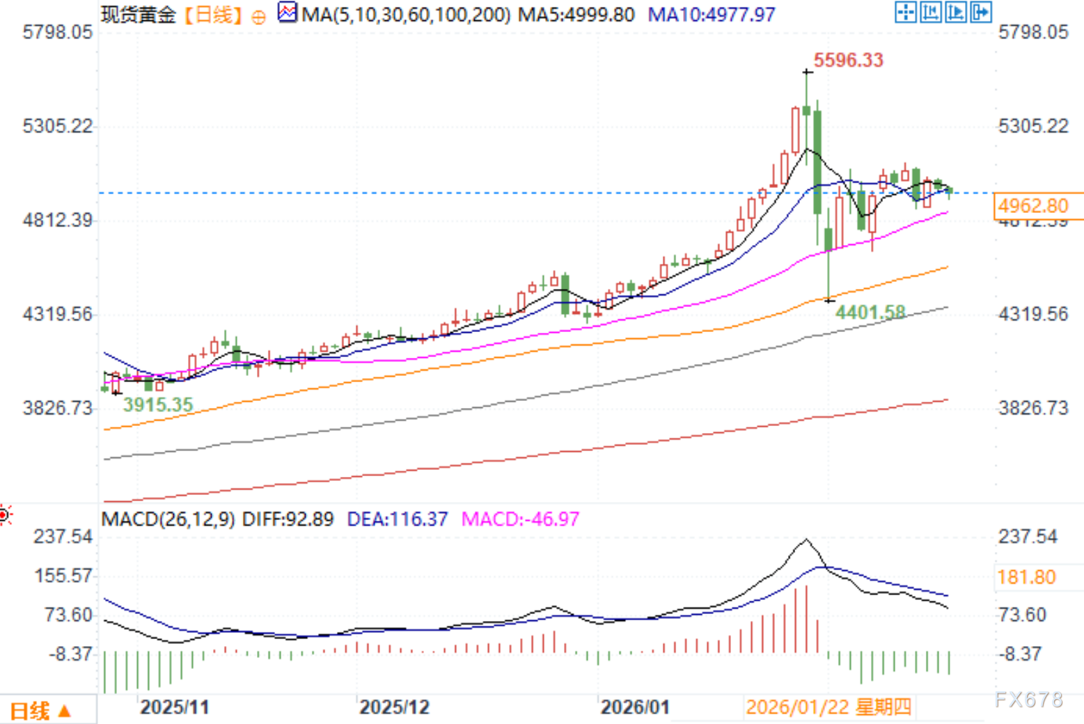 现货黄金日线图 来源:易汇通