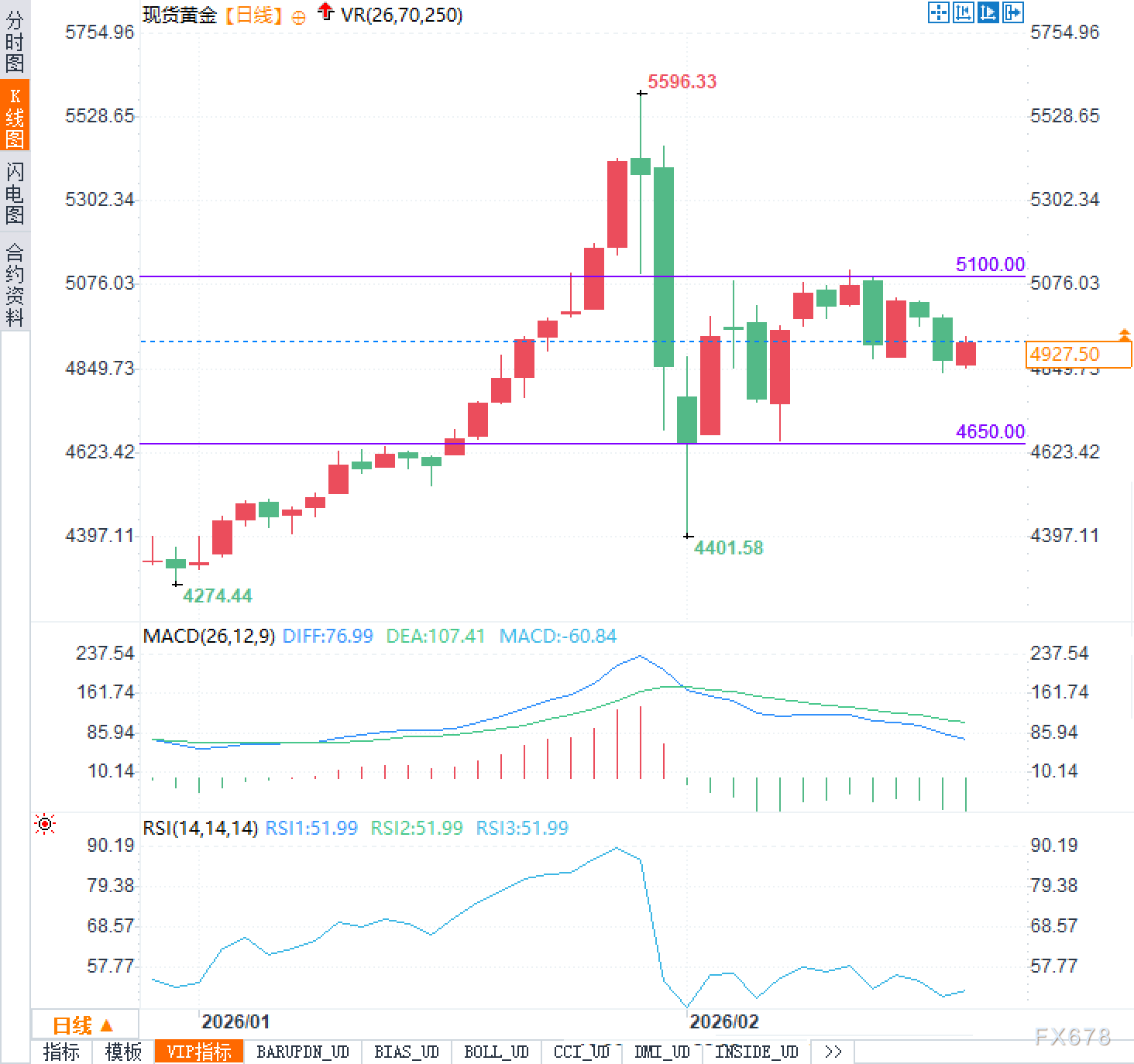 汇通财经APP讯——2月18日周三,现货黄金欧市早盘交投4930美元附近,市场正处于一个微妙的十字路口。从日线图走势来看,价格在经历了此前高点5596.33美元的大幅回落之后,目前正在4650.00美元至5100.00美元的区间内寻求方向性选择。