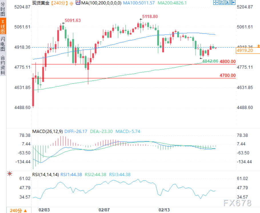 汇通财经APP讯——周三(2月18日)欧市时段,因低位买盘介入现货黄金价格震荡走高,现交投于每盎司4920美元附近,日内涨幅约0.85%,金价在前一交易日跌至逾一周低点4841.31美元/盎司后走势总体趋稳偏强。