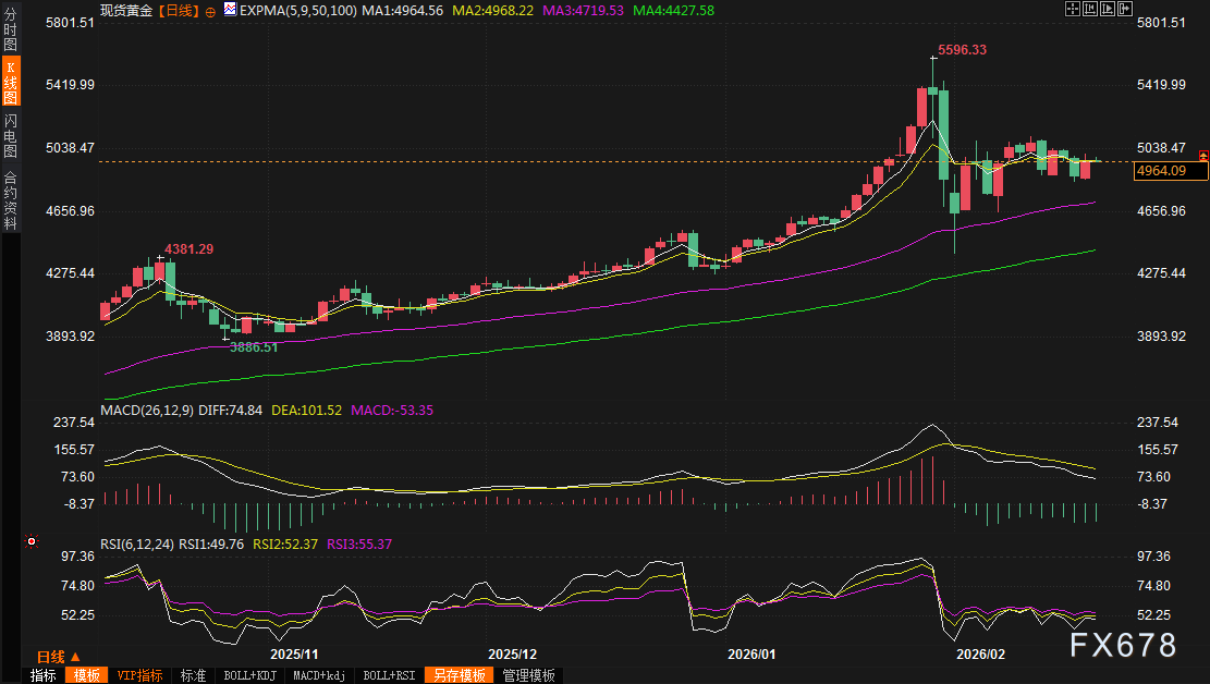 汇通财经APP讯——周三(2月18日)现货黄金从一周低点4842美元/盎司附近强势拉升,最终收报4976美元/盎司,涨幅约2%;4月美国黄金期货也上涨2%,结算价逼近5010美元大关。这一幕让整个市场为之沸腾——在地缘政治风险急剧升温、美联储内部利率路径严重分歧的双重夹击下,黄金再次证明了自己作为终极避险王者的地位。周四(2月19日)亚市早盘,现货黄金窄幅震荡,目前交投于4970美元/盎司附近。
