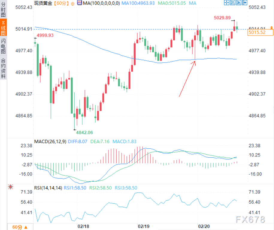 汇通财经APP讯——周五(2月20日)欧市时段,现货黄金连续第三个交易日震荡上行,现交投于每盎司5015美元附近,日内涨幅约0.35%。然而,在喜忧参半的基本面背景下,上行潜力似乎有限。此外,交易员可能会选择等待关键的美国宏观数据发布——第四季度GDP初值和个人消费支出(PCE)价格指数——然后再进行新的方向性押注。这些关键数据将在影响市场对美联储降息路径的预期方面发挥关键作用,这进而将推动美元走势,并为无息黄金提供有意义的推动力。