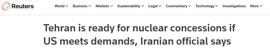 #中东局势#FX168财经报社(亚太)讯 英国路透社周一(2月23日)报道称,伊朗方面表明,在与美国的谈判中,德黑兰准备在核项目上做出让步,以换取美国解除制裁并承认伊朗拥有铀浓缩的权利,此举旨在避免遭到美国攻击。