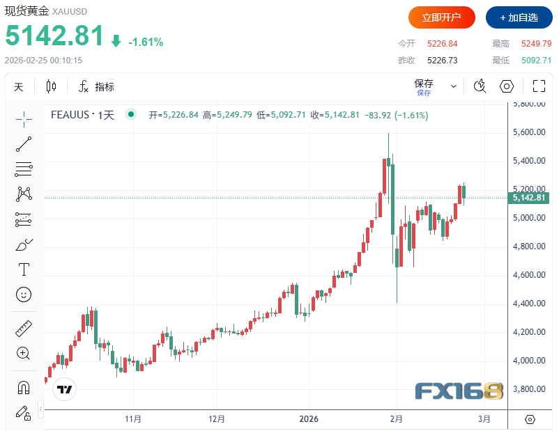 美伊谈判在即但军事对峙持续升级,中东地缘风险一触即发,成为搅动今日黄金市场的核心变量。周三(2月25日)现货黄金市场呈现震荡偏强格局,截至发稿现货黄金现报5184.32美元/盎司,日内微涨0.74%。