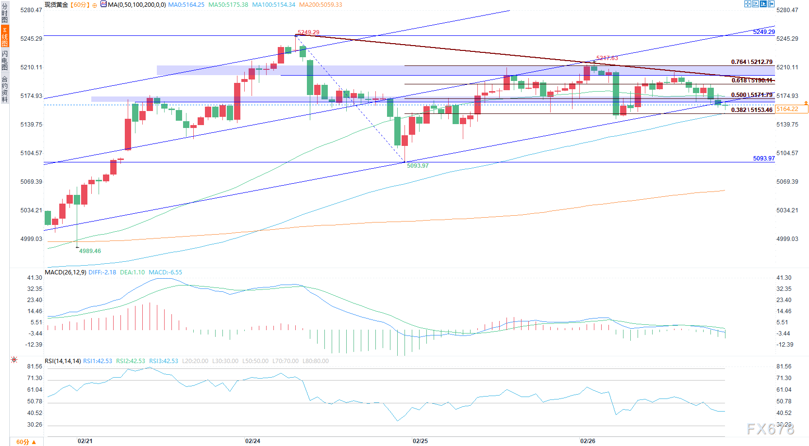 汇通财经APP讯——周四(2026年2月26日),现货黄金冲高回落,盘中走平。受美国关税政策不确定性及美伊核谈判地缘风险双重提振,避险需求持续支撑金价。结合60分钟技术图表,当前价格在多重支撑带附近企稳反弹概率较大,但短期仍面临阻力考验。