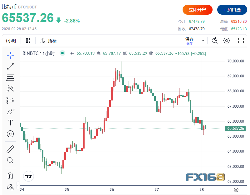 FX168财经报社(北美)讯 周五(2月27日),全球市场在“通胀再抬头、AI估值焦虑、地缘风险升温”三重压力下同步承压。美国1月PPI明显高于预期,打击了“通胀正在降温”的市场叙事;美股科技板块领跌,纳指与标普500指数势将录得近一年来最大单月跌幅;美元在数据与避险需求支撑下一度小幅走强;加密资产随风险偏好降温回落,比特币跌向6.5万美元。与此同时,资金涌向避险资产,10年期美债收益率跌破4%,贵金属与原油走强。