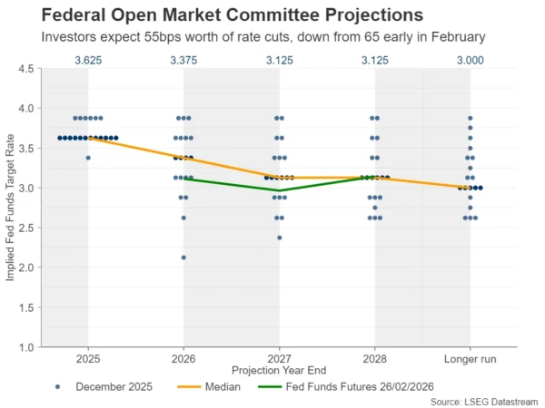值得注意的是,尽管美国劳工统计局(BLS)公布的1月就业表现强劲,但ADP此前报告的私营就业增速偏弱,同时JOLTS职位空缺在去年12月降至2020年9月以来最低。这意味着,若劳动力市场要让投资者进一步下调降息押注,可能需要更多“持续改善”的证据。另一方面,若美元想要出现更“有力度且更持久”的修复,利率预期可能需要进一步压缩到不足50个基点的降息空间——也就是市场开始动摇“2026年还会有第二次25个基点降息”的判断。