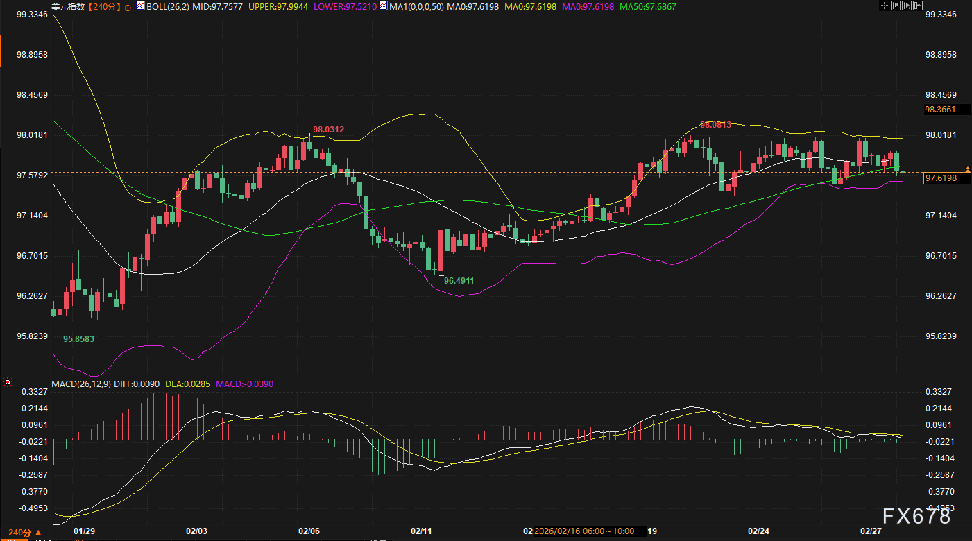 美元指数: 目前在97.62附近震荡。虽然受到特朗普关税言论引发的部分避险支撑,但短线动能偏弱。