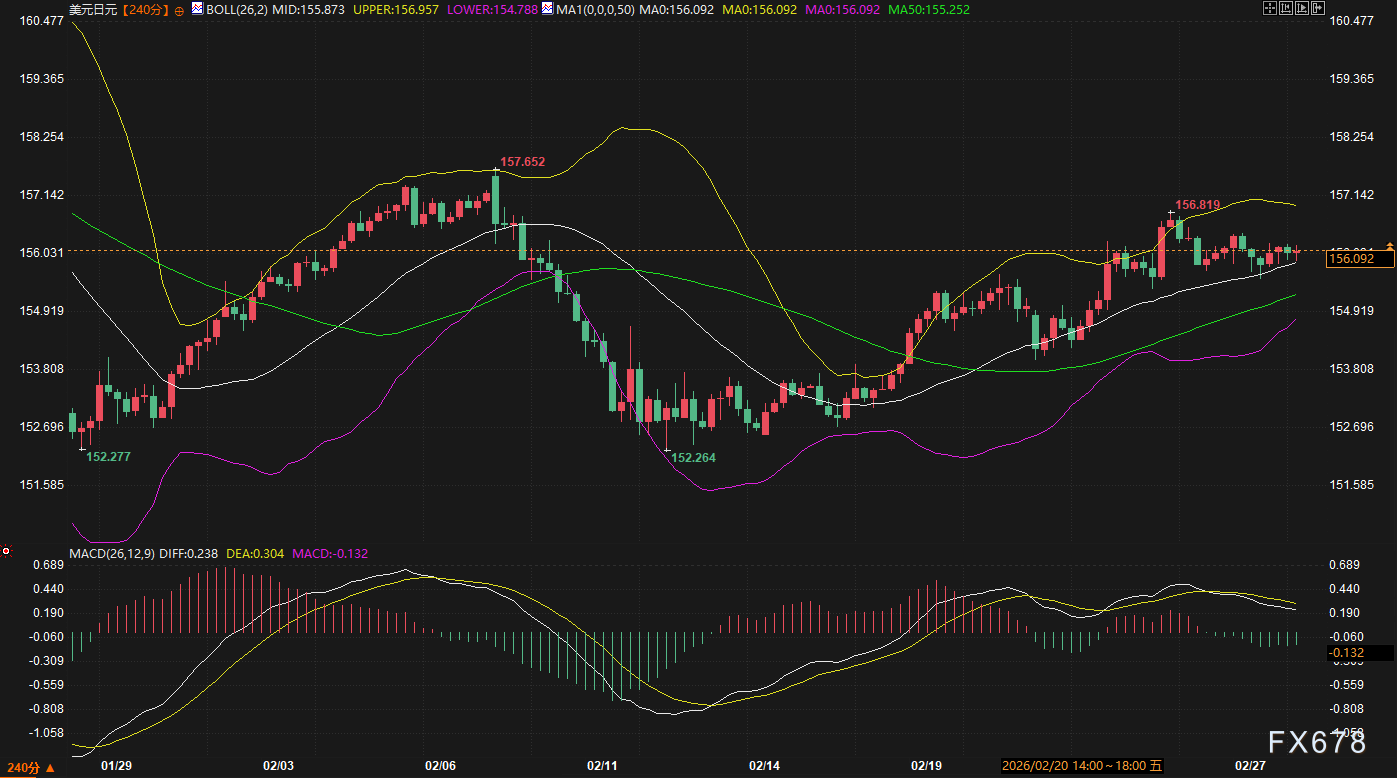 美元兑日元下方受避险回流支撑于154.5至155.2,上方157.5至158.8构成阻力,重点关注日本央行对油价冲击的政策反应。