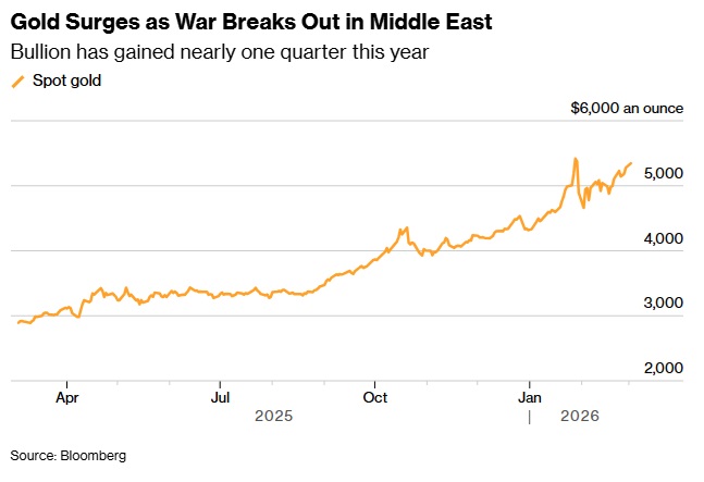 在早盘交易中,黄金上涨逾2%,至5390美元/盎司上方。此前一周,随着美军在该地区集结,金价已上涨逾3%。 周末冲突进一步扩大,美国和以色列对伊朗发动袭击,德黑兰则以多轮导弹袭击回应,目标涉及多个国家。伊朗最高领袖哈梅内伊在首日打击行动中身亡。 现货黄金价格早盘最高触及5393.44美元/盎司,日内涨幅达到114美元。