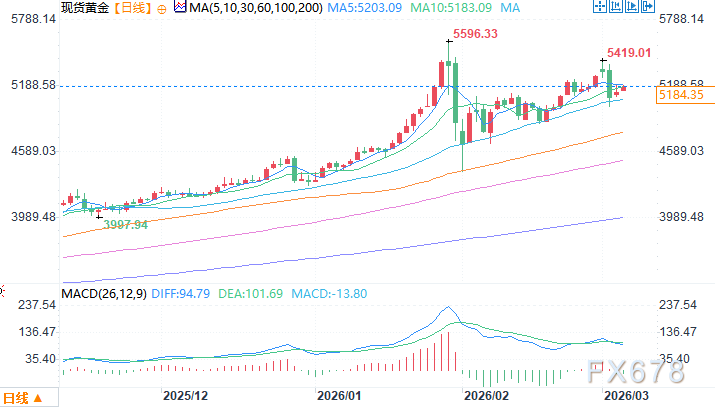 北京时间3月5日12:17 现货黄金 报 5182.35 美元/盎司