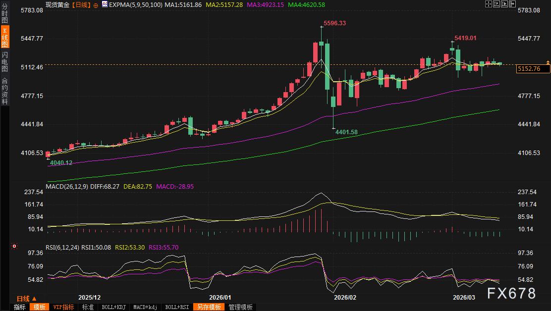 汇通财经APP讯——黄金市场正上演一场惊心动魄的“拉锯战”:一边是中东战火熊熊燃烧带来的避险狂潮,另一边是美元狂飙与通胀幽灵死灰复燃的双重压制。周三(3月11日),现货黄金收于每盎司5176美元,单日小幅回落0.3%,美国4月黄金期货更是重挫1.2%至5179.10美元。周四(3月12日)亚市早盘,现货黄金震荡微,目前交投于51510美元/盎司附近。短短几天内,金价振幅急剧收窄,仿佛市场在战争与利率的双重夹击下屏住了呼吸。然而,这场看似平静的回调背后,却隐藏着足以重塑全球资产格局的超级不确定性。