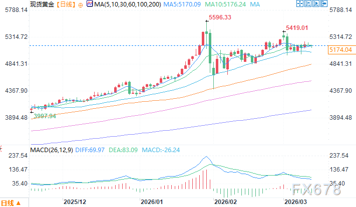 北京时间3月12日10:28 现货黄金 报 5168.04 美元/盎司