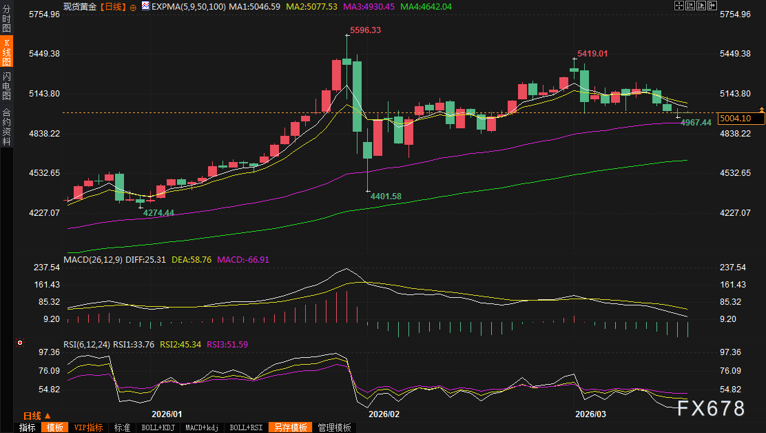 (现货黄金日线图,来源:易汇通)