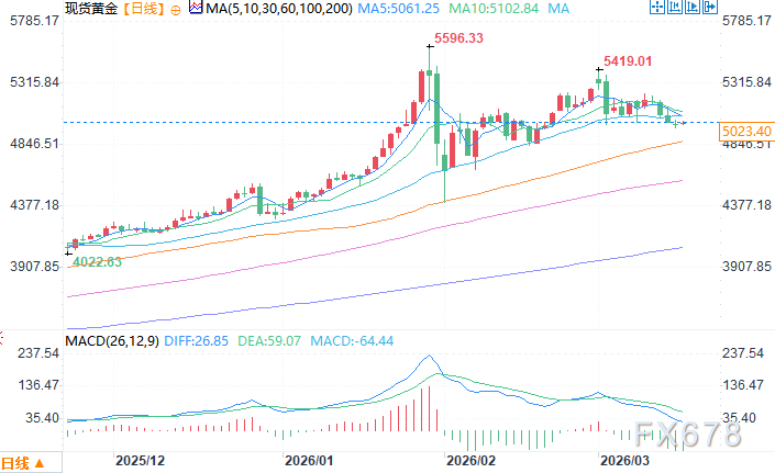 北京时间3月17日11:41 现货黄金 报 5028.40 美元/盎司