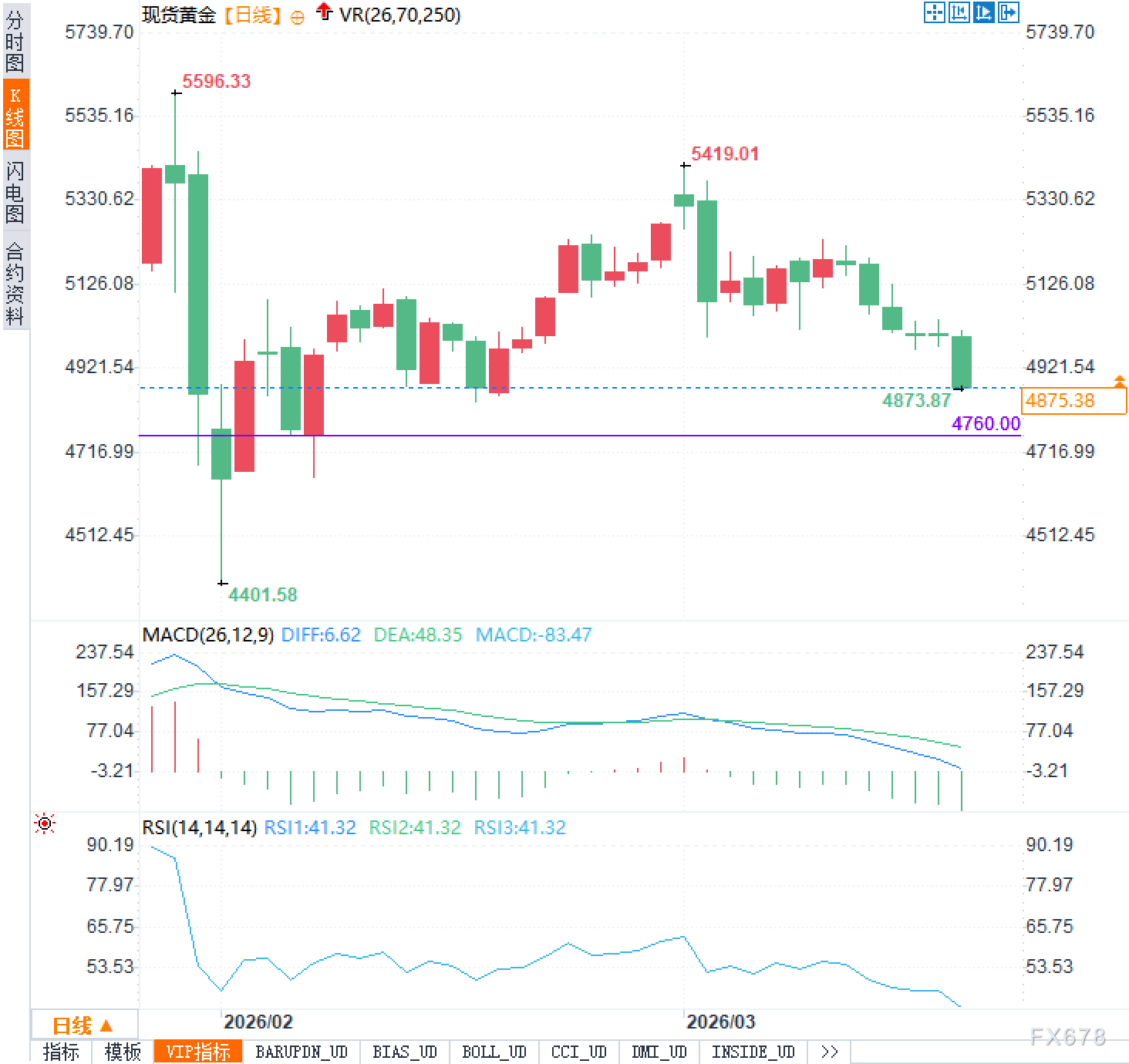 黄金价格已跌破5000美元整数关口,并失守50日均线,技术面显示空头动能增强。短期内,价格在4870-5000美元区间震荡,跌破关键支撑后,下方潜在目标指向4800美元附近的低点区域。成交量放大伴随价格下行,表明抛售压力主导。地缘风险虽提供避险支撑,但宏观面主导下,美元走强和高债券收益率环境限制金价反弹空间。