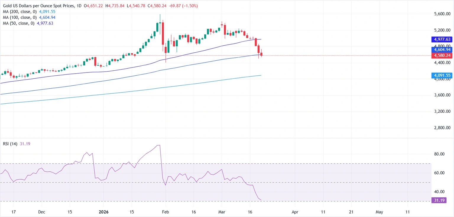 FX168财经报社(北美)讯 现货黄金(XAU/USD)周五(3月20日)延续跌势。此前连续两个交易日的快速下挫,已将金价打压至2月初以来最低水平,逼近4500美元一线。此次下跌的背后,是市场在本周全球主要央行公布最新货币政策决定后,愈发强化了对“全球利率将在更长时间内维持高位”的定价预期。