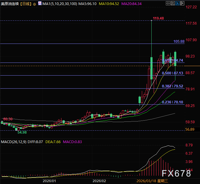 (WTI原油期货合约连续日线图,来源:易汇通)