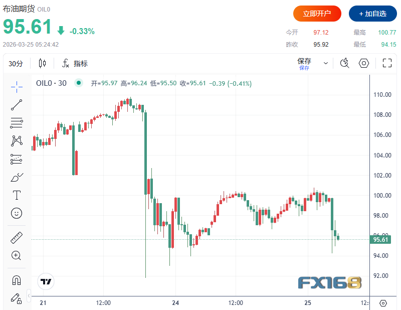 布油期货短线下跌至94.15美元,跌幅超过3%。