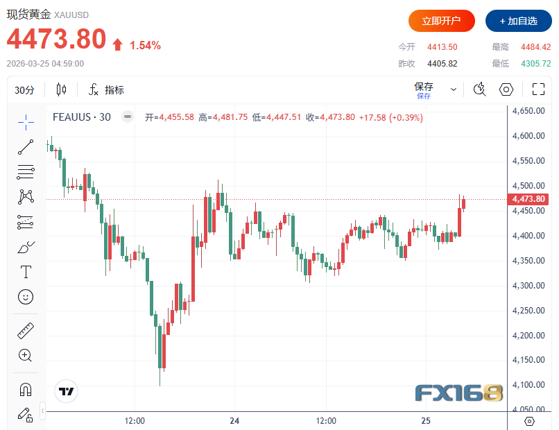 现货白银日内涨幅达3%,最高触及71.223美元/盎司。现货黄金短线拉升近90美元升至4484.42美元/盎司,涨幅超1.6%。