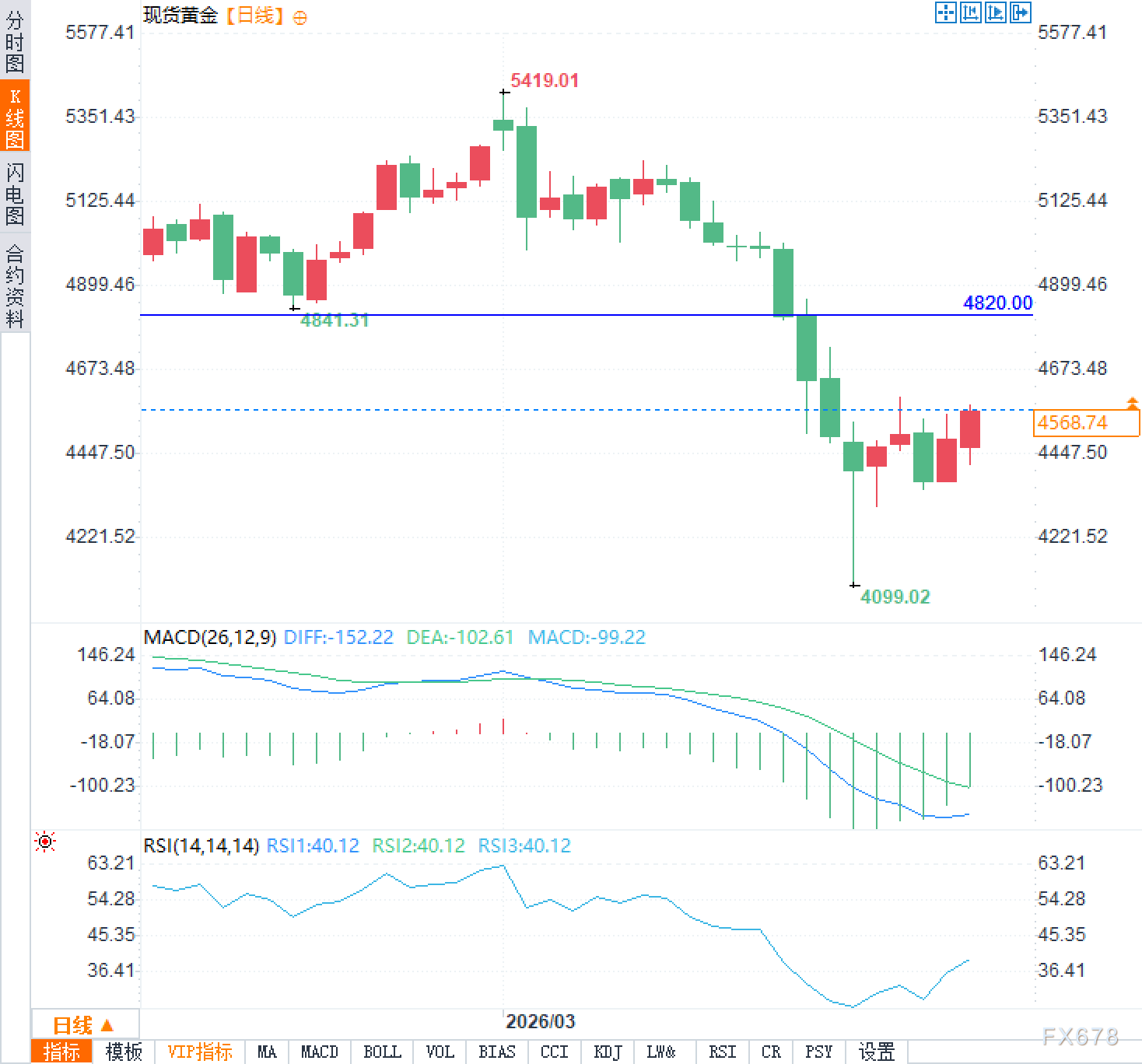 技术层面,现货黄金已从200日均线附近反弹,并开始测试100日均线阻力。交易员关注4570-4600美元区间作为关键阻力,若有效突破,可能打开进一步上探空间;反之,若回落至4400美元下方,则需警惕测试更低支撑。