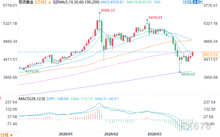 现货黄金日线图 来源:易汇通