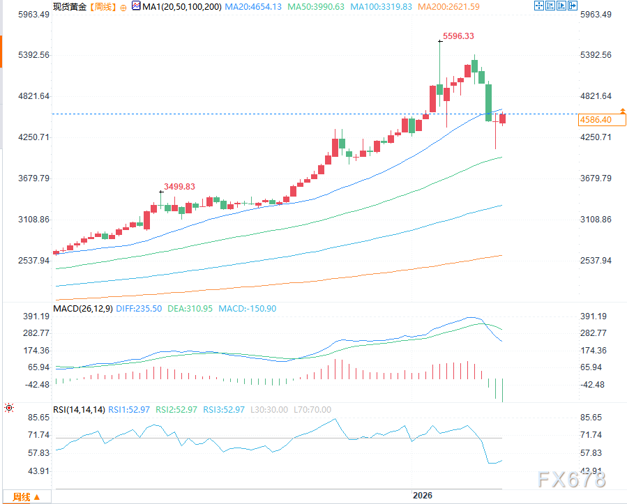 汇通财经APP讯——金价在大幅抛售行情过后尝试止跌企稳,不过整体修复力度明显偏弱,并未展现出强势反转的特征。尽管周线级别收出一根看涨锤子线形态,一度暗示下方存在阶段性支撑,然而价格并未就此开启连续上行,后续跟进力量严重不足。从日线级别价格走势观察,金价震荡回升的节奏拖沓且乏力,典型的“死猫跳”虚假反弹形态已初步显现,这意味着当前反弹更像是下跌过程中的短暂休整,而非趋势反转信号。