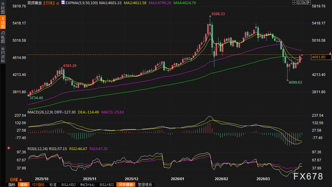 北京时间07:42,现货黄金现报4691.80美元/盎司。