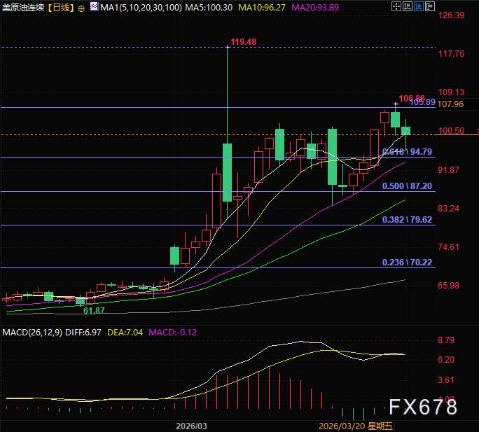 (WTI原油期货连续日线图,来源:汇通财经旗下易汇通)