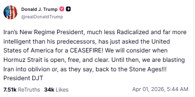 3)军事威胁加码:警告若伊朗未达成妥协协议,将在未来2-3周发动"极其严厉打击",甚至威胁袭击伊朗发电厂;但明确表示暂未打击伊朗石油设施,称其为"最容易目标"。