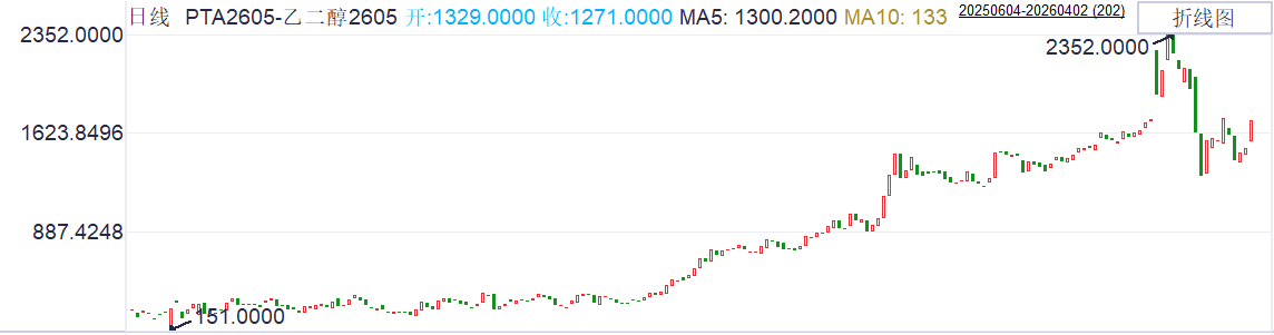 审核:王 莹(投资咨询号:Z0017889) 06.跨品种套利:多PTA空乙二醇05 目前PTA加工费被压缩至150-200元/吨的极低区间,存在强烈的修复预期。基本面支撑,PTA2026年上半年无大量新增产能,处于“金三银四”旺季,供需偏紧。EG:面临新装置投产压力,港口库存持续累积,供需格局明显弱于PTA。 交易逻辑:当前PTA2605与EG2605差价处于较低位。TA2605 & EG2605两者基本面分化,价差具备走扩可能。 套利策略:该策略为跨品种套利策略,利用PTA供需紧平衡与EG累库压力的矛盾,赚取产业链利润转移的价差。 风险提示:需警惕原油价格大幅波动带来的系统性风险。未来如果差价跌破1540则取消关注。