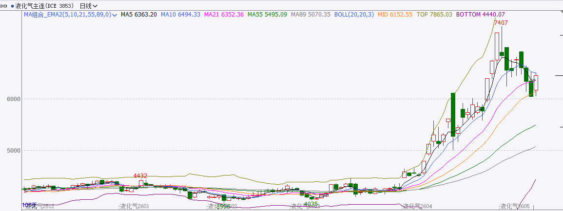 审核:张国军(投资咨询号:Z0019540) 02.LPG主力合约:大幅反弹 截至前一个交易日收盘,LPG反弹。收阳线。 走势分析:地缘风险反复,原油反弹,LPG大幅反弹,若地缘风险结束,或继续回落。短期宽幅震荡。