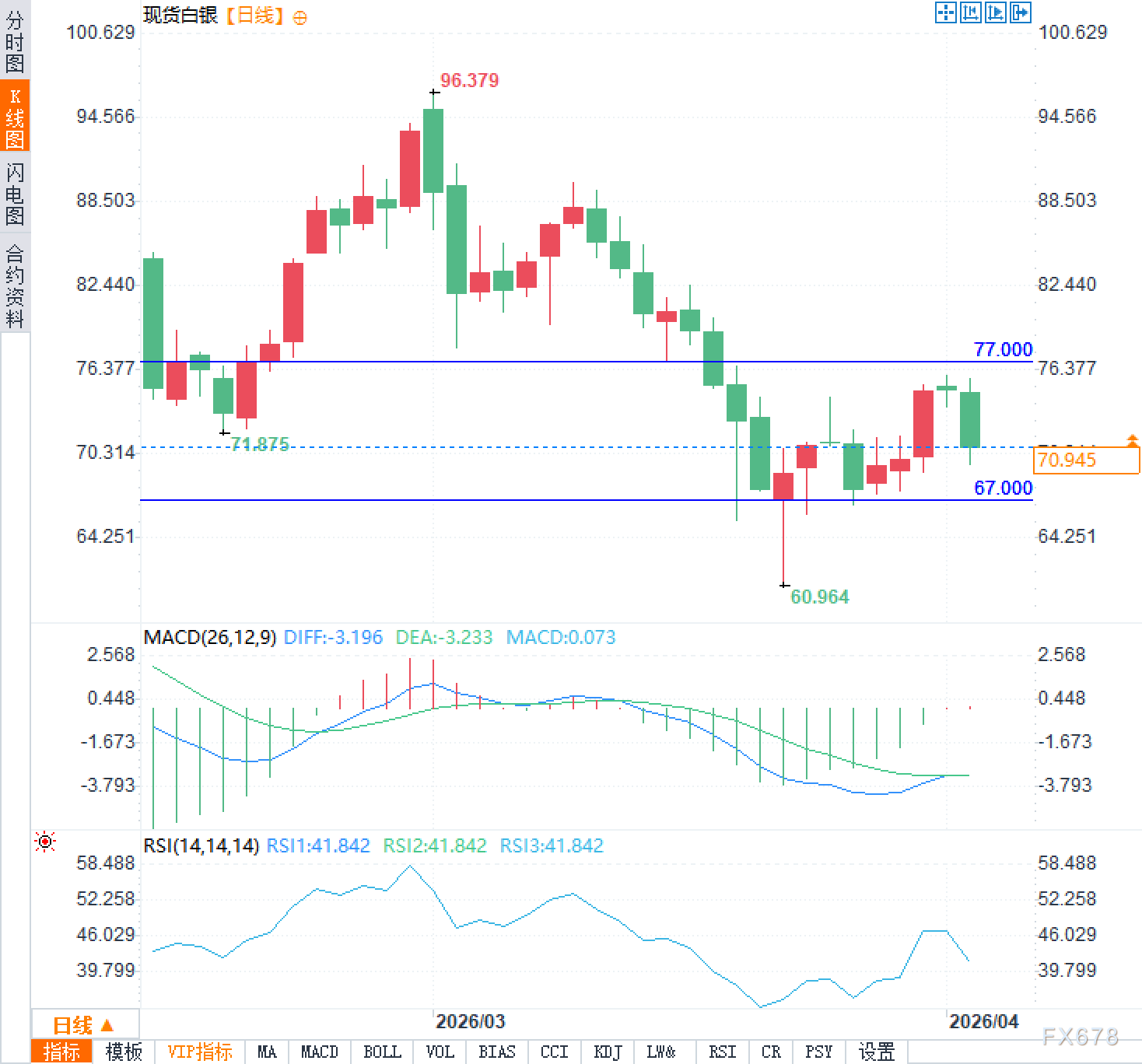 尽管短期面临压力,现货白银的供需基本面仍呈现第六个年度缺口,预计2026年全球供需缺口规模维持在约6700万盎司左右。工业需求占比超过60%,涵盖太阳能、电动汽车及电子领域,结构性增长趋势未改。矿产供应增速有限,而库存持续去化,进一步放大价格弹性。分析师普遍预计2026年均价有望达到81美元/盎司,较2025年实现显著提升。这一长期支撑意味着当前回调更多是周期性调整,而非趋势反转。当通胀担忧阶段性消退、央行政策重新转向中性时,买盘有望重返市场,推动价格修复此前高位部分跌幅。